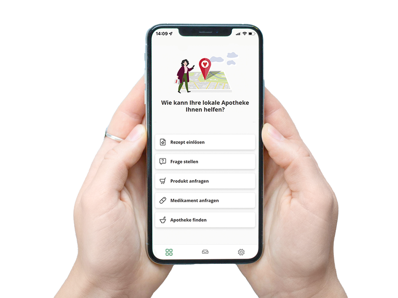 Die mea® App bietet viele Funktionen, z.B. Medikamente vorbestellen und, in Verbindung mit der Gesundheitskarte, E-Rezept einlösen.